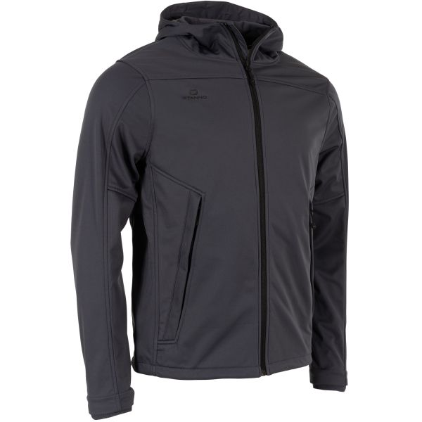 The Stanno Prime Softshell Jacket is water- and wind-resistent, but stays breathable. This jacket has a high-necked collar and a hood with an elastic cord. The zipper on the front side is closed with a storm flap. The zippers can be closed closed with high-quality SBS zippers. The side pockets provide plenty of room to carry your stuff. This jacket has a rounded and extended back and features Stanno logos on the right chest and back. Also, the Stanno Prime Softshell Jacket has a rib cuff at the end of the sleeves for extra warmth and comfort.